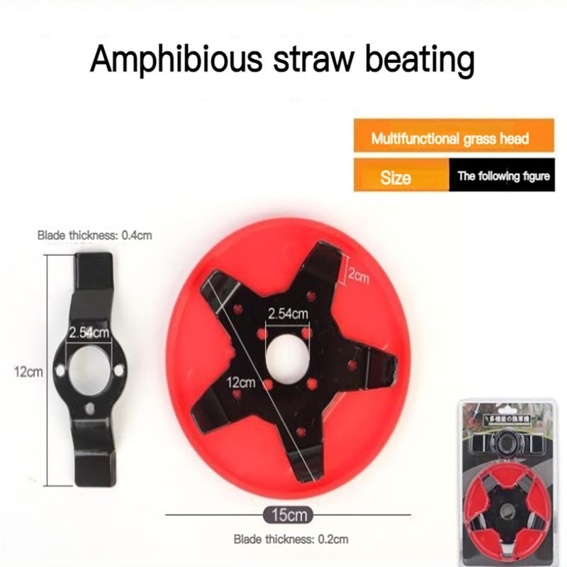 Type: lawn mower Quantity: 1 set Material: metal Color: red Mover diameter: 15cm/ 5.9inch Paddy field blade size: 12*2cm/ 4.72* 0.79inch(L*H) Dryd blade: 12* 0.4cm/ 4.72*0.16inch (L*H) Installation hole diameter: 2.54cm/ 1inch Net weight: 310g/ 10.93oz Package: 1* lawn mower head 2* blade