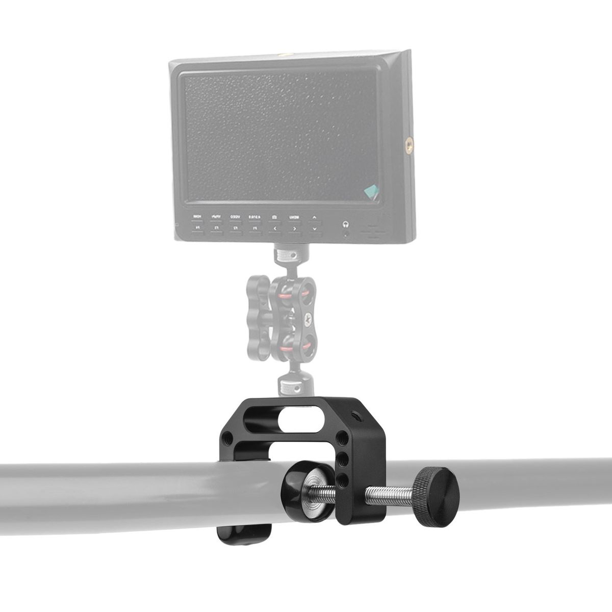 The universal C clamp can be attached to desks, benches, light stand, tripod and other photography bracket.