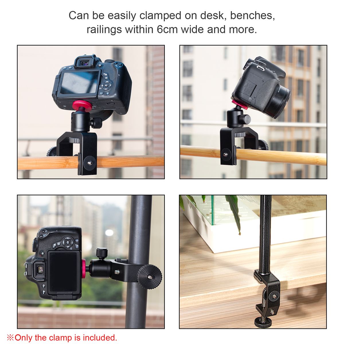 The clamp jaw is adjustable, can be easily mounted on desks within 6cm wide.
