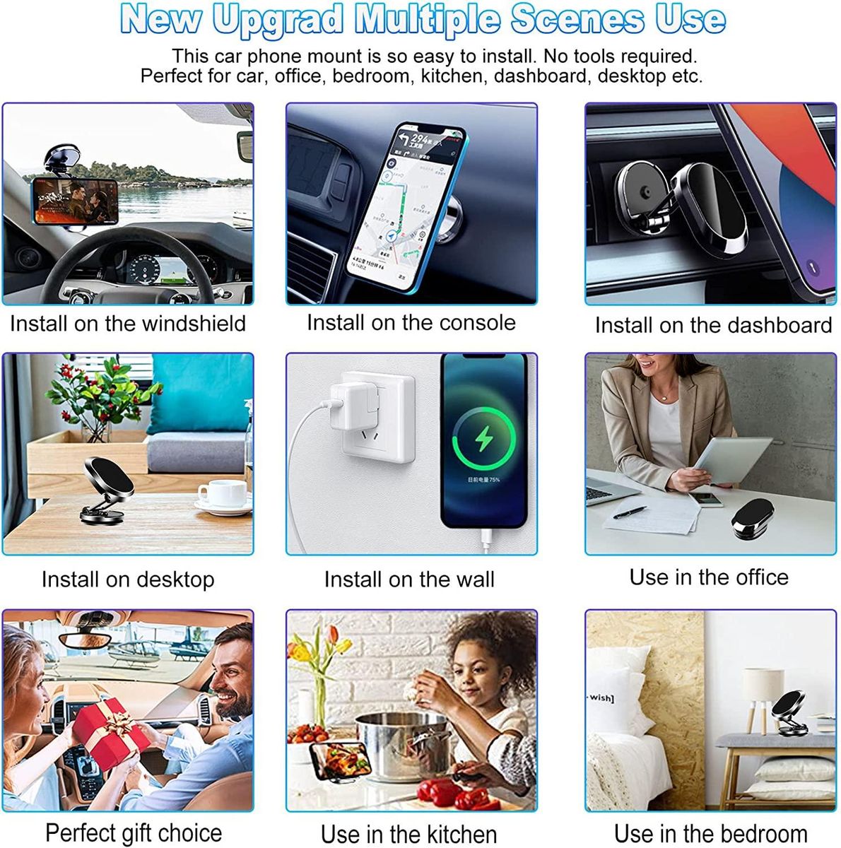 Always Find The Perfect Angle: This magnetic car ph0ne holder will allow you to rotate 360 degrees and to lets you find the perfect angle easily. Height, angle and distance between you is adjustable.