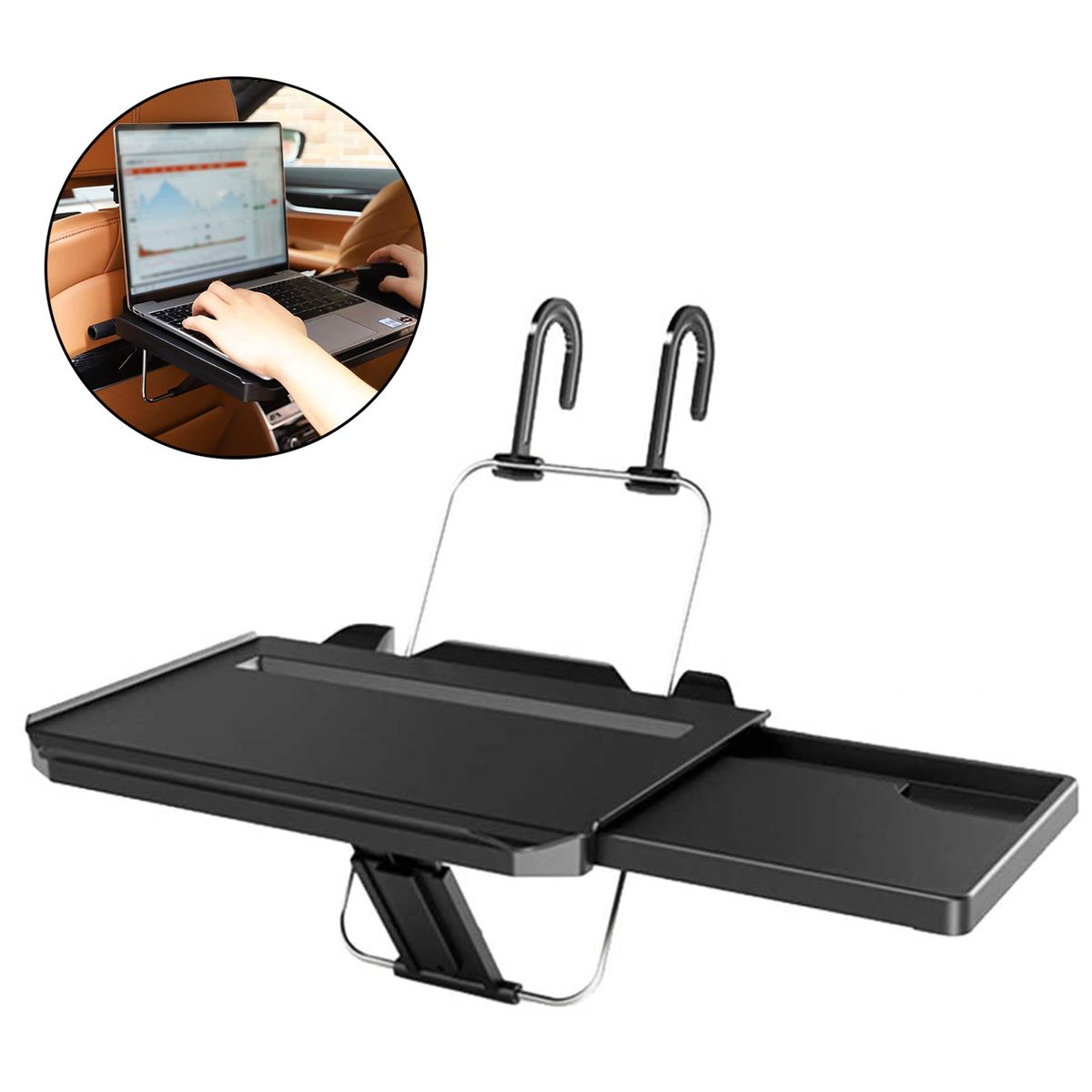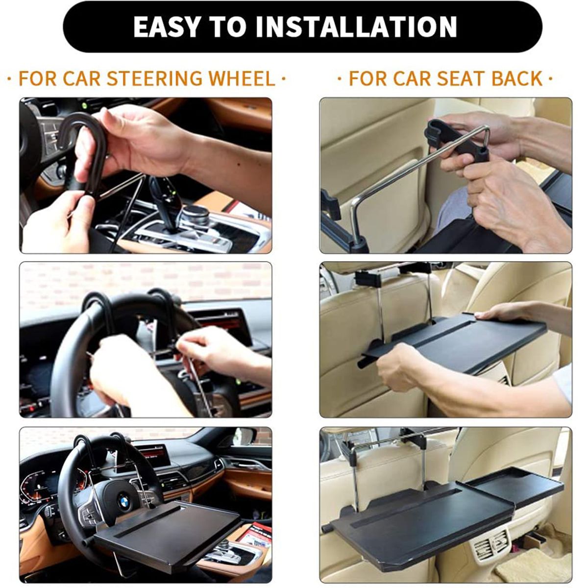 Suitable for cars with headrest seats, and can be used to the steering wheel of any car, providing convenient place for working, dining, etc.