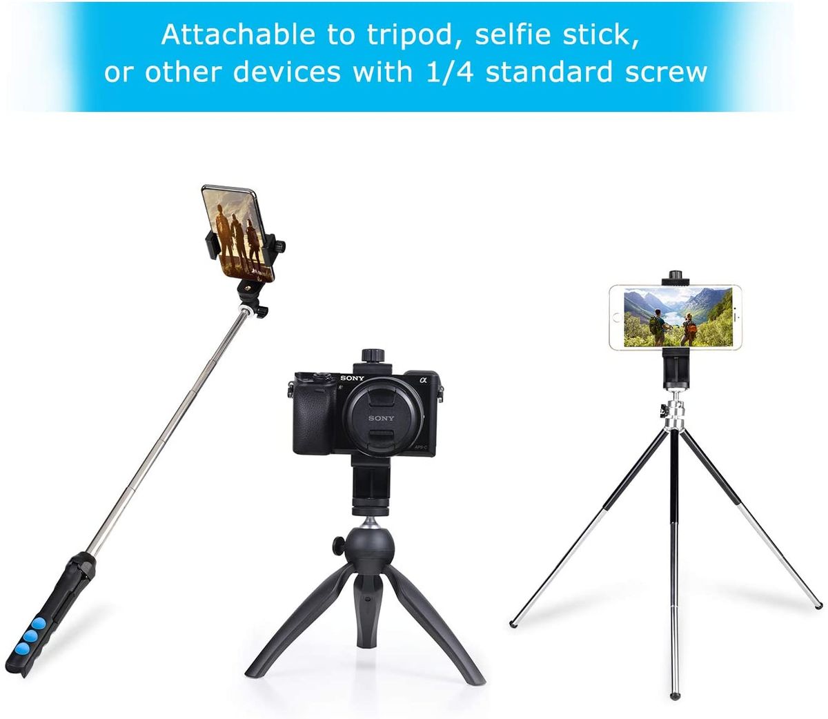 Two standard 1/4" screw thread interfaces meet your various needs. Small and compact enough to fit it in your pocket.