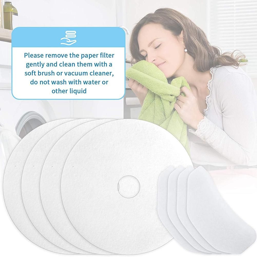 Easy to clear: please remove the paper filter gently and clean them with a soft brush or vacuum cleaner, do not wash with water or other liquid; It is good at catching the lint and stuff compared with other same products, as its cleaning capacity