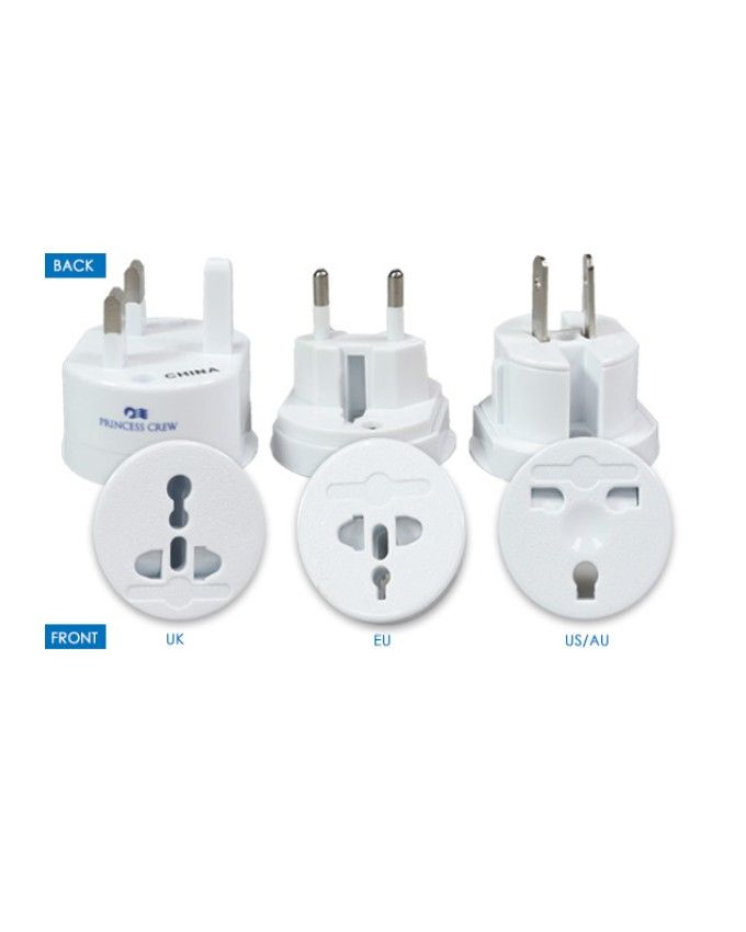 Universal Compact Plug Adaptor EU US UK AU . A smart and easy way to keep your devices powered up all across the globe. Compact, Multi-country Converter (this is not a stepdown or up converter) . All three converter plugs snap together in a neat "building block" cylinder, only 3.5 inches tall.These are also made with safety in mind. Each outlet has internal safety caps to prevent other items from being pushed into the outlets. You may need to push the plugs in firmly to get the caps to open. A great travel companion, Even if you don't have plans to travel right now, it's still a great idea to get a few.