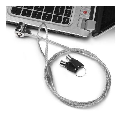 This Universal Computer/Laptop Lock (Key Type Lock) is the first Computer/Laptop security product to offer the benefits and convenience of using key to lock your laptop. Its use of cut-resistant, galvanized steel cable to attach your notebook computer or laptop to any secure object. Simply loop the lock around a desk or chair, then insert the cable into your notebook's lock slot to lock it.