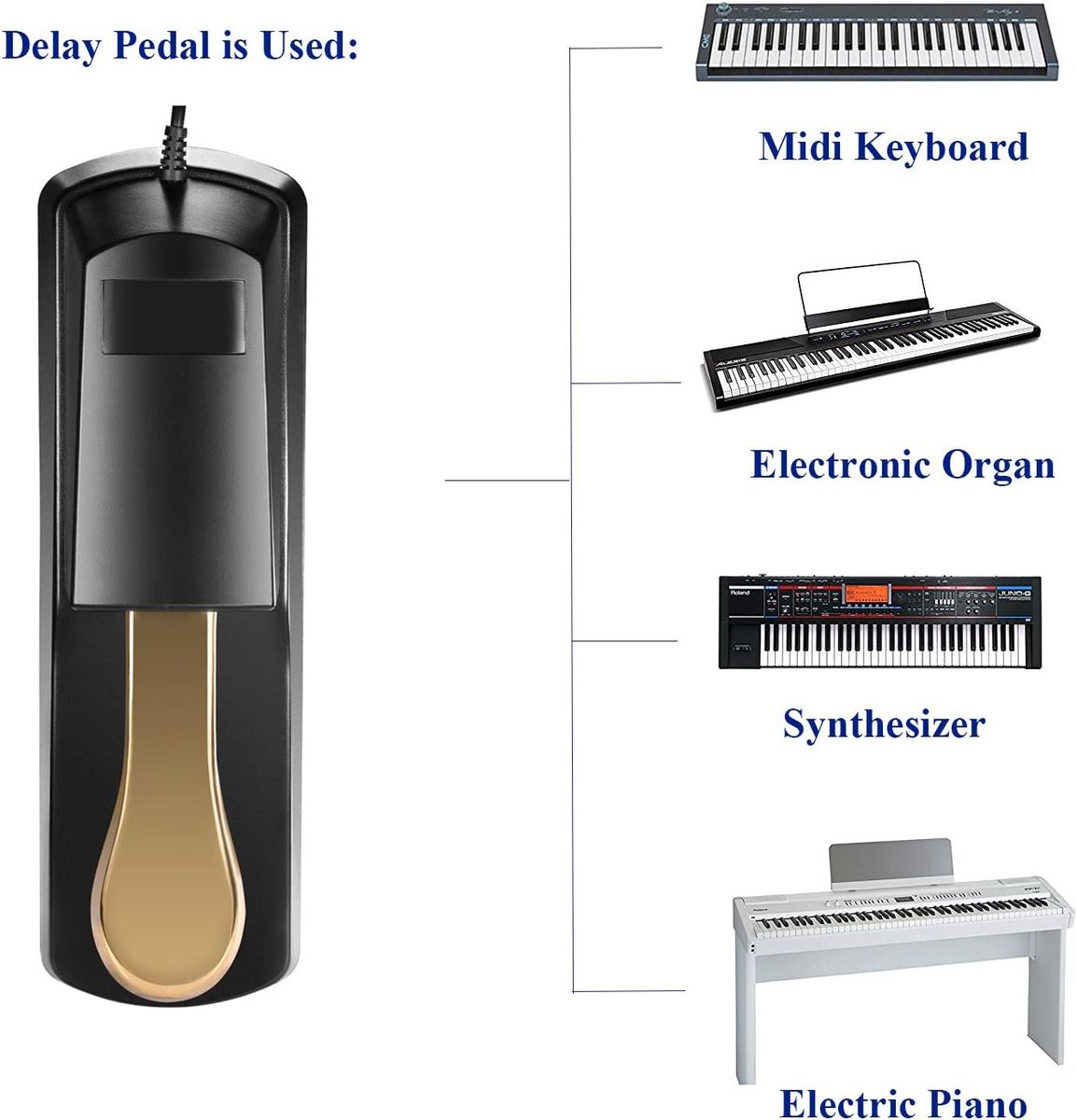 Specially designed rubber pads located on the pedals underside grips the floor and stays put while you play; Includes 1.55M cable with 1/4 inch jack for connection to virtually any midi keyboard, stage piano or sound module with a 1/4 inch sustain pedal input