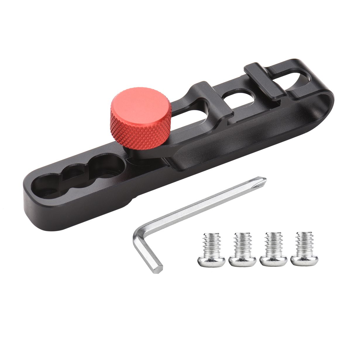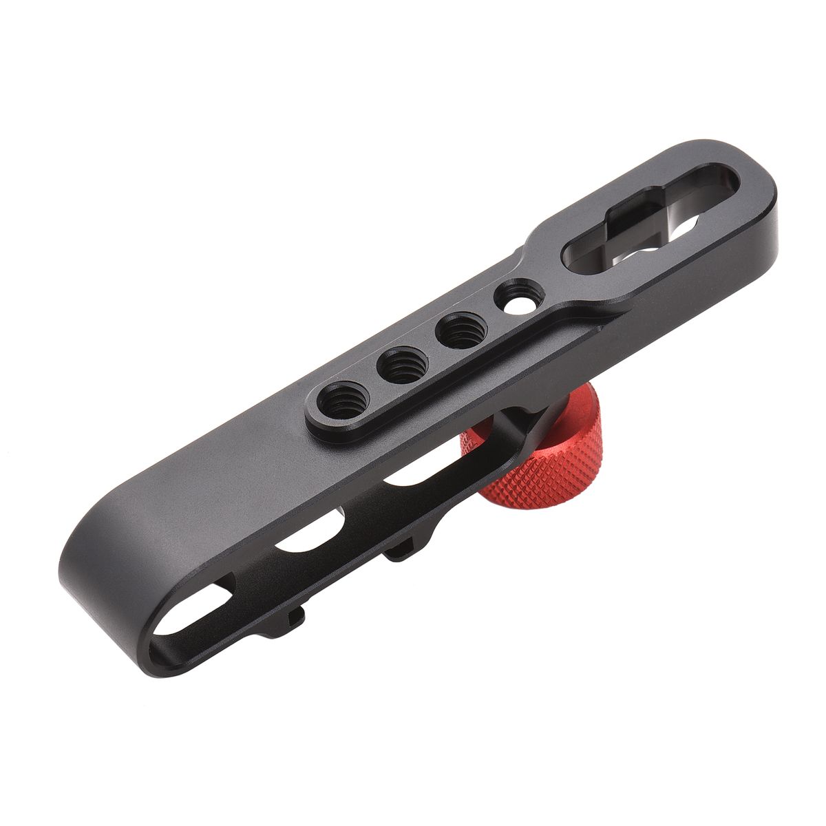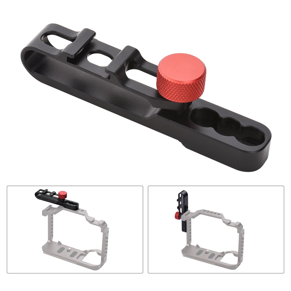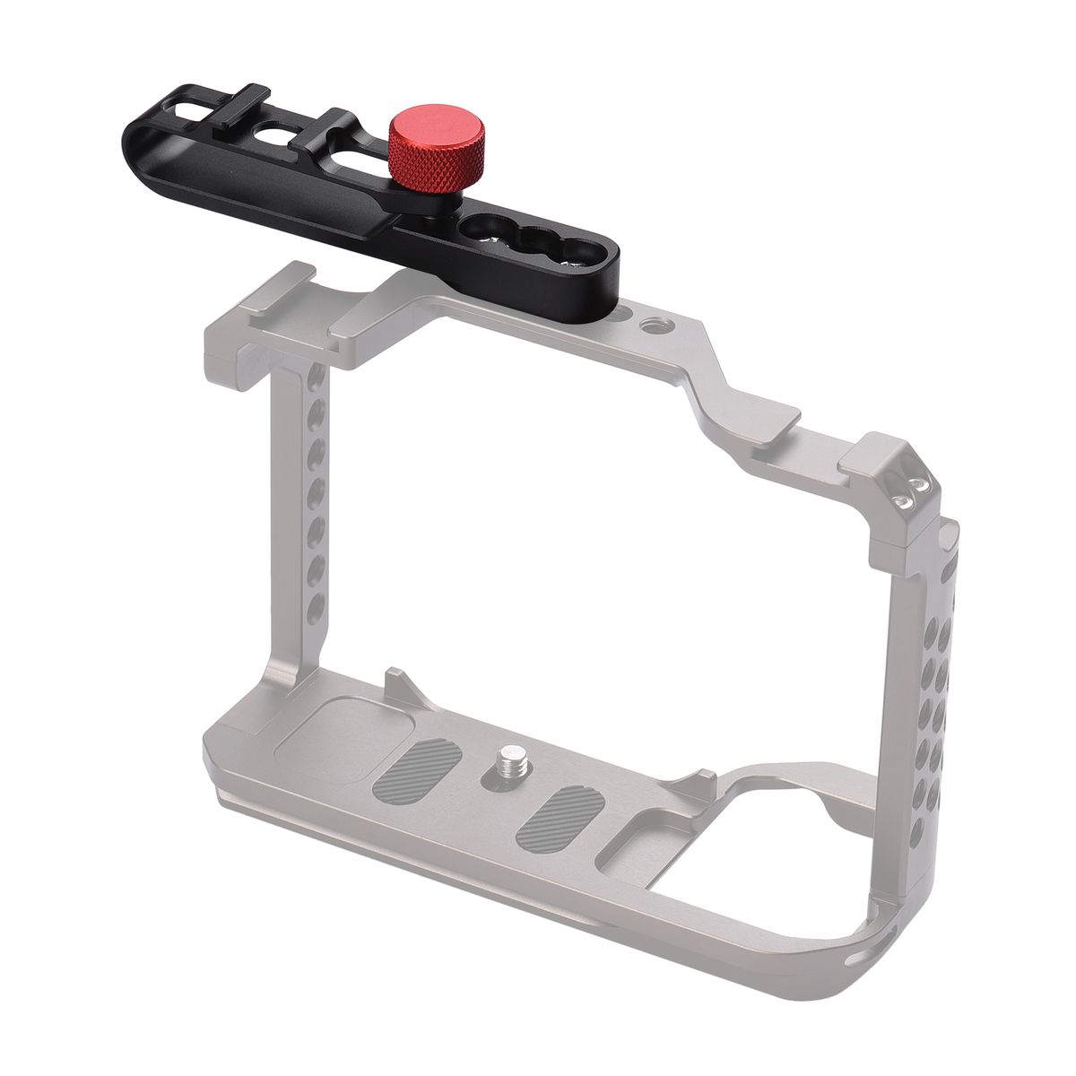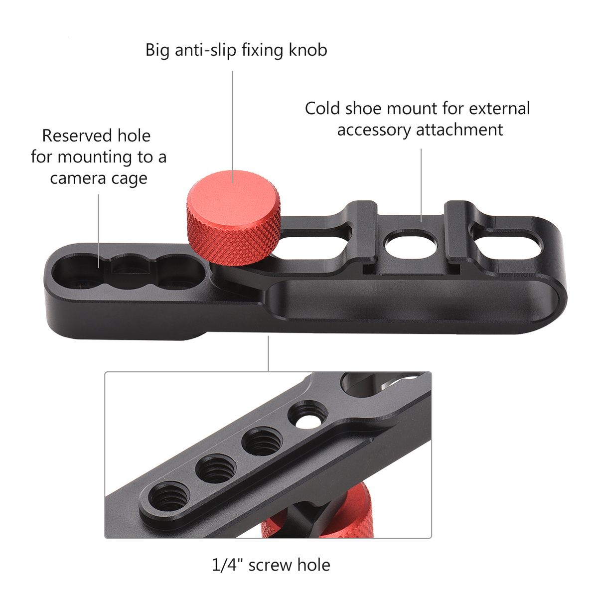 Can be securely and firmly attached to the camera cage through two 1/4 inch screws, which are included.