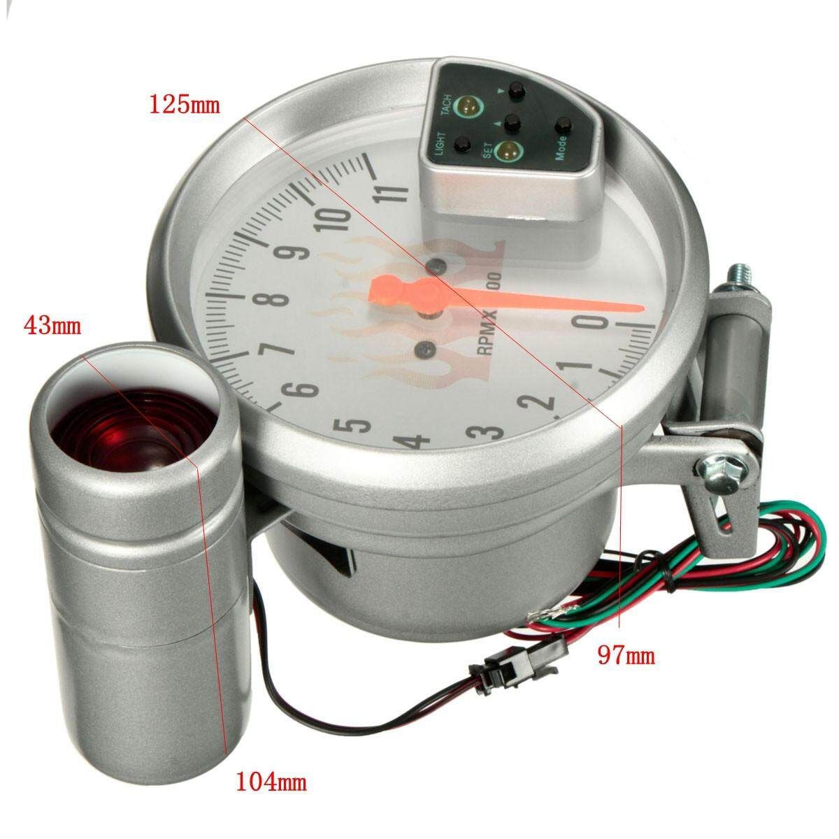 Universal 5 7- White Face Tachometer Tach with Shift Light 11000 RPM
