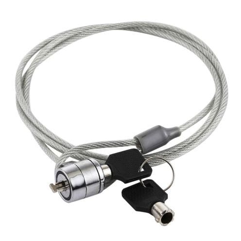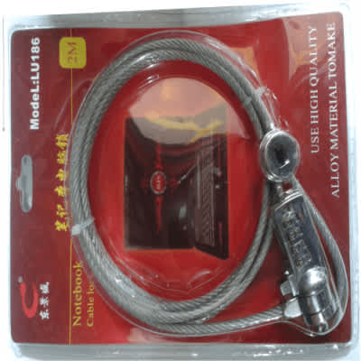 ) New generic Notebook / Laptop Universal Security Cable Chain Lock2) Secures your laptop / notebook onto any stationary object [ex. Desk, poles, etc.] and prevent it from theft3) The T-bar mechanism bar allows popular utilization of this lock4) Simply loop your laptop around a stationary object with the cut-resistant galvanized steel chain5) Cable comes with 2 lock keys as an alternative spare6) Easy loop installation for lock cable7) Cable Length: 2m8) Color: Silver9) Material: Cut Resistant galvanized steel cable with White vinyl coating10) Works with all notebooks, desktops, docking stations with built in standard security locking slot