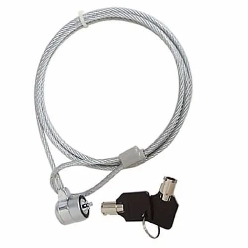 This Universal Computer/Laptop Lock (Key Type Lock) is the first Computer/Laptop security product to offer the benefits and convenience of using key to lock your laptop. Its use of cut-resistant, galvanized steel cable to attach your notebook computer or laptop to any secure object. Simply loop the lock around a desk or chair, then insert the cable into your notebook's lock slot to lock it.