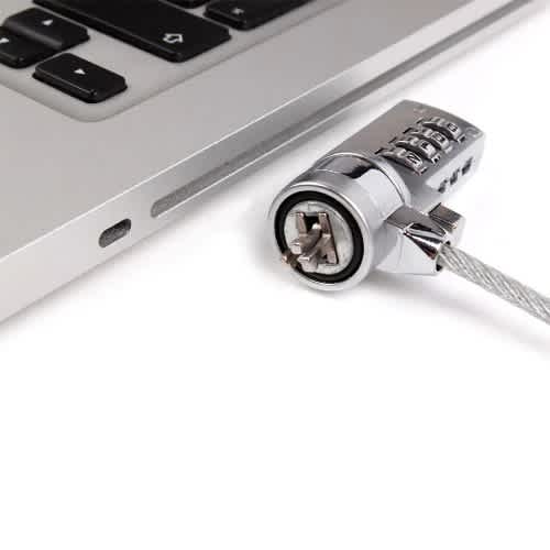 Lapop locks are an easy and inexpensive way to secure your laptop when you are using it in a public place. Locks are available in key or combination versions.