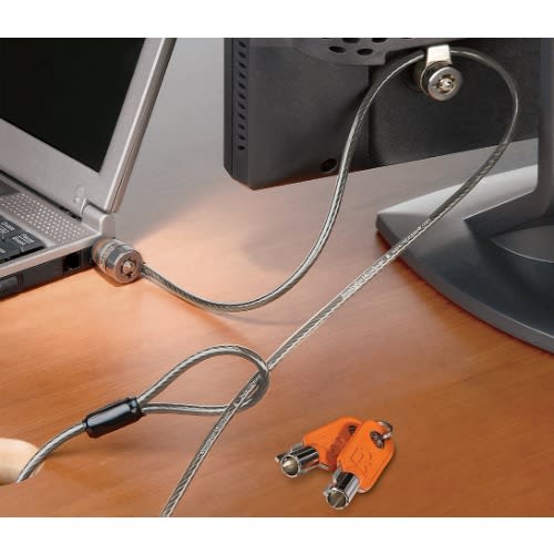 The computer Cable Lock is designed to be used with industry-standard lock slot images like the type found on a laptop, docking station, desktop PC, flat panel display, printer, or projector.
