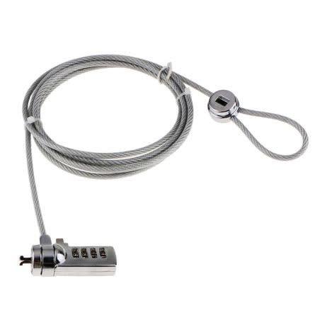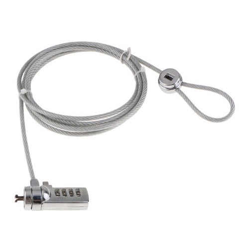 Anti Theft Computer Cables Chain Leash Lock Laptop Notebook6.6 Feet Universal Cable, 6.0mm dia, suitable for most digital devices fitted with a slot 6-foot cable length.Theft Deterrent: Keyless 4 dial combination lock. The lock offers 10,000 different combination codes that can be selected by the user so it's personalized and more easily remembered.One key lever push button design for one hand operation to easily install lock, and easy to take.Available for most notebooks, desktops, projectors, LCD and Screens with built in locking slot hole.In addition to securing a notebook or laptop, it may be used with a notebook, LCD screen, screen, projector and will fit any device that has compatible slot.