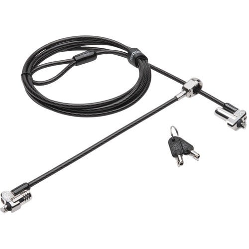 - Wrap the 6 ft (1.83 m) vinyl-coated, galvanized steel cable around any secure object and attach to your notebook or tablet. Insert the key into the lock and turn clockwise 90 degrees.- Use the 360-degree range to position the cable lock head as needed.- Get the reassurance of a one-year limited warranty.