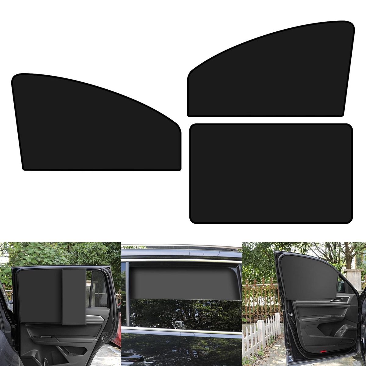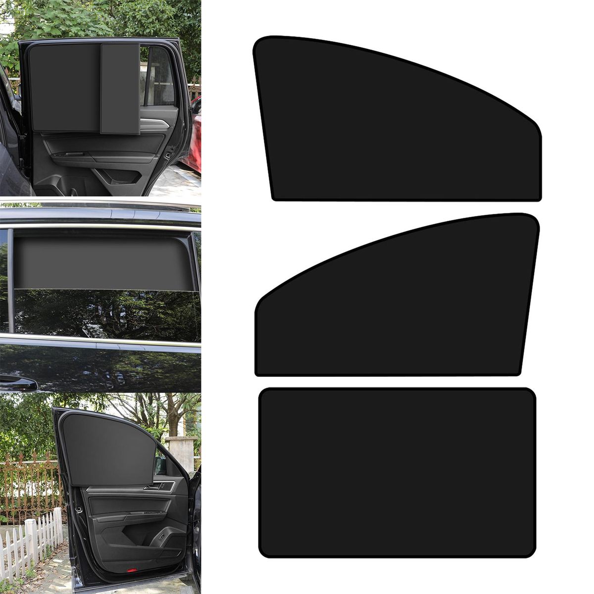 Description:Car Window Sunshade: Block direct sunlight and maintain car interior temperature, avoiding the discomfort caused extremely high temperature in accidents caused by direct sunlight, protecting your children and pets from the rays. Material: Thickened black rubber cloth, effectively reflects the sunlight to , wear resistant and durable.Installation: Magnetic car window sunshade, with 10 magnets, directly absorbs the window edge so install .Foldable: Shade cover can be folded at will without blocking the sight. window is reserved to observe the , making your driving safer.Privacy Protection: curtains give you privacy so read, nap, sleep, etc. Suitable for camping or travel.Specification:Product size: (Optional)Driving Side: 62cmx33cmx48cm/24.41inchx12.99inchx18.90inchCopilot Side: 62cmx33cmx48cm/24.41inchx12.99inchx18.90inchRear: 79cmx48cm/31.10inchx18.90inchMaterial: Black Rubber ClothPackage Includes:1 Car Window SunshadeNote:Please allow slightly errors due to manual measurement and different monitors.