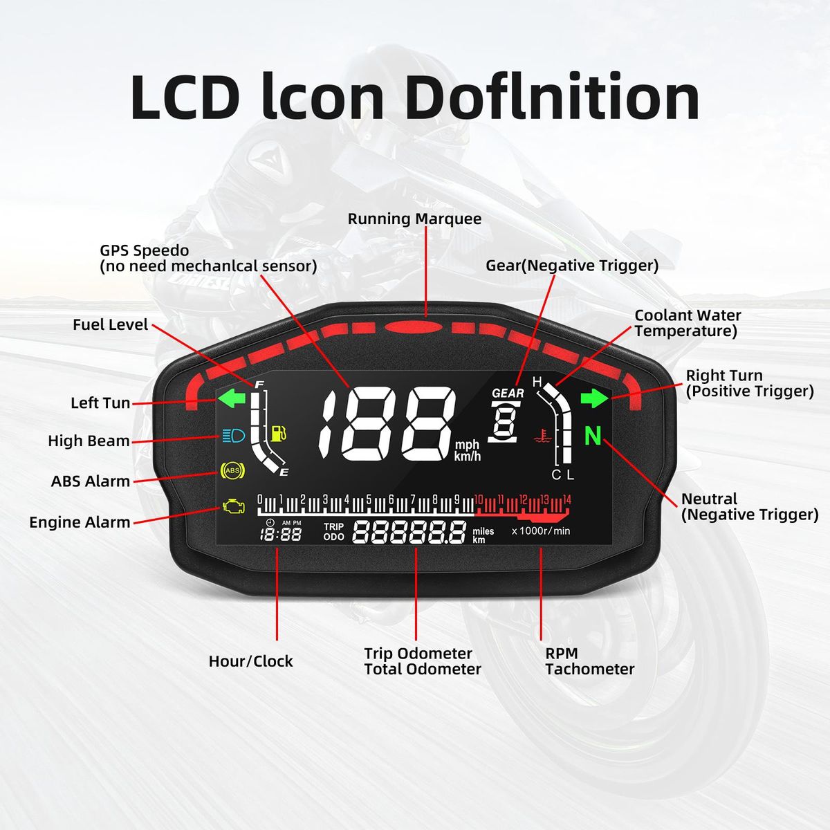 Motorcycle LCD Digital Speedometer:Motorcycle Odometer