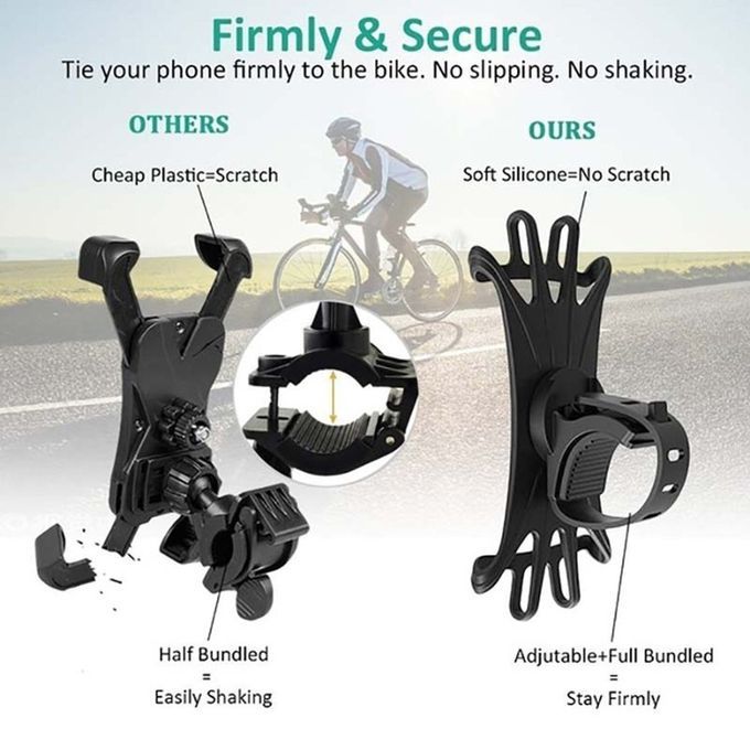 1. Shock Proof: Completely protect your phone! Flexible silicone absorbs all shocks unlike rigid plastic supports. Once you have fixed the phone, it will never fall no matter how rough the ground is. It offers firm grip and keeps the phone in the desired position, no matter how fast or sporty you go.