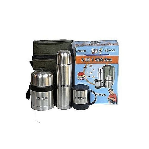 This Set of 5 gift pack is an ideal gift for grown up and kids alike when going to school, work or take along when on a road or field trip. the vacuum food container and flask keeps your beverage and food hot or cold as you desire and its stainless steel design makes it durable and easy to maintain and it also come with a carry bag