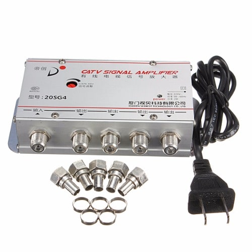 2 Way 20db CATV TV antennaSignal Amplifier Antenna for digital tv box Signal Amplifier Booster Splitter US EU PlugProduct Description:Name:2 way amplifier with gain adjustableCategory:Household 20dB amplifierFeatures1.Adopting imported high-frequecy amplification component, low noise current design2.Aluminum material housing,fast heat dissipation qualityTechnical parameterBandwidth (MHz) 45-860Total gain(dB) 20 & plusmn;2Gain adjustment(dB) 0-10Flatness in band(dB) & plusmn;0.5Slop(dB) 3Noise factor(dB) & le;5Power consumption(W) 1Output number 3Dimension(mm) 82X57X30User Noted:This amplifier is suitable for: CATV analog (closed circuit) signal, CATV digital signal, terrestrial wave (DTMB) signal, outdoor antenna signal,(Please note: the satellite pot signal is not available)Usually, the TV image at home has snowflakes, or when the image is mosaic when watching with a set-top box, an amplifier needs to be installed, but at the same time, please note that the amplifier is not omnipotent, and the effect of each family is different, and the effect will be different.Package Content1 x TV VCR Signal Booster Cable AMP Amplifier CATV Home Shop Workplace 2W +Free EU plug converterRemark:This product amplifier is suitable for: Cable TV analog (closed-circuit) signal, cable TV digital signal (STB which does not support on-demand interactive function), DTMB signal, outdoor antenna signal (indoor antenna and satellite pot are not available). Usually, when there are snowflakes in the TV image at home or when the STB is watching, the image appears mosaic, the amplifier is added, But please note that amplifiers are not omnipotent. The effect will be different for different situations. All our products will be tested and delivered.Please shoot carefully.