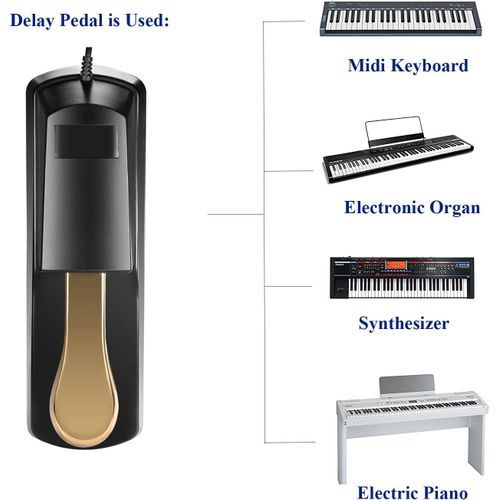sustain pedal for electronic musical instruments (including but not limited to the following devices: electronic pianos, MIDI keyboards and Synthesizer). Features -