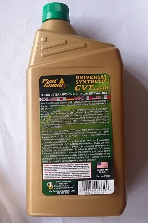 PureGuard Universal Synthetic CVT Fluid is a full synthetic automatic transmission fluid specifically formulated for today's technologically sophisticated variable transmissions. This product eliminates the need to stock multiple, limited OEM brands. CVT Fluid has equal, and in most cases, better performance than the most common North American CVT Fluids being supplied by leading OEMs. CVT Fluid provides engineered anti-shudder performance for smooth transfer of power, exceptional anti-oxidation and anti-wear protection in highly sophisticated variable transmissions