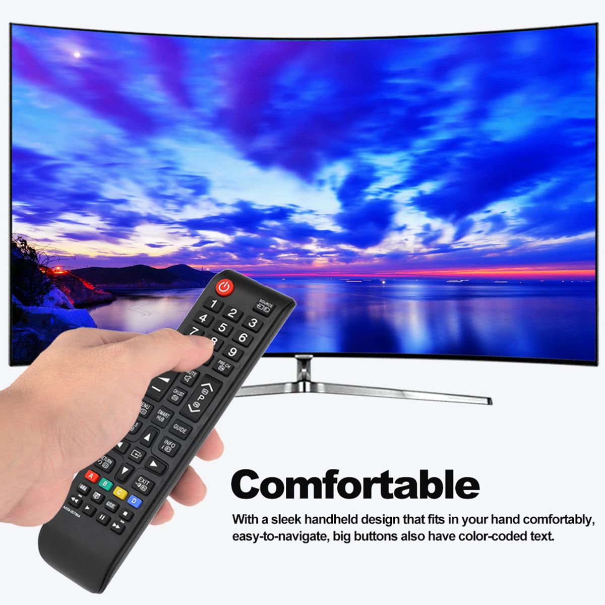 This is an innovative remote controller for Samsung smart TV. It's slim and sleek design makes it comfortable in the palm when being used.