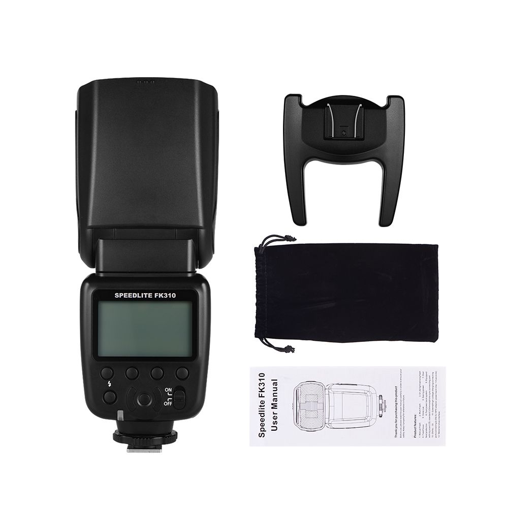 This speedlite equipped with universal hot shoe contact, is compatible with /Nikon/Sony/Olympus/Pentax and other brands DSLR cameras.