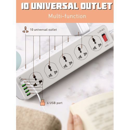 6 Universal Outlet. 10 Devices Can Work At the Same Time.