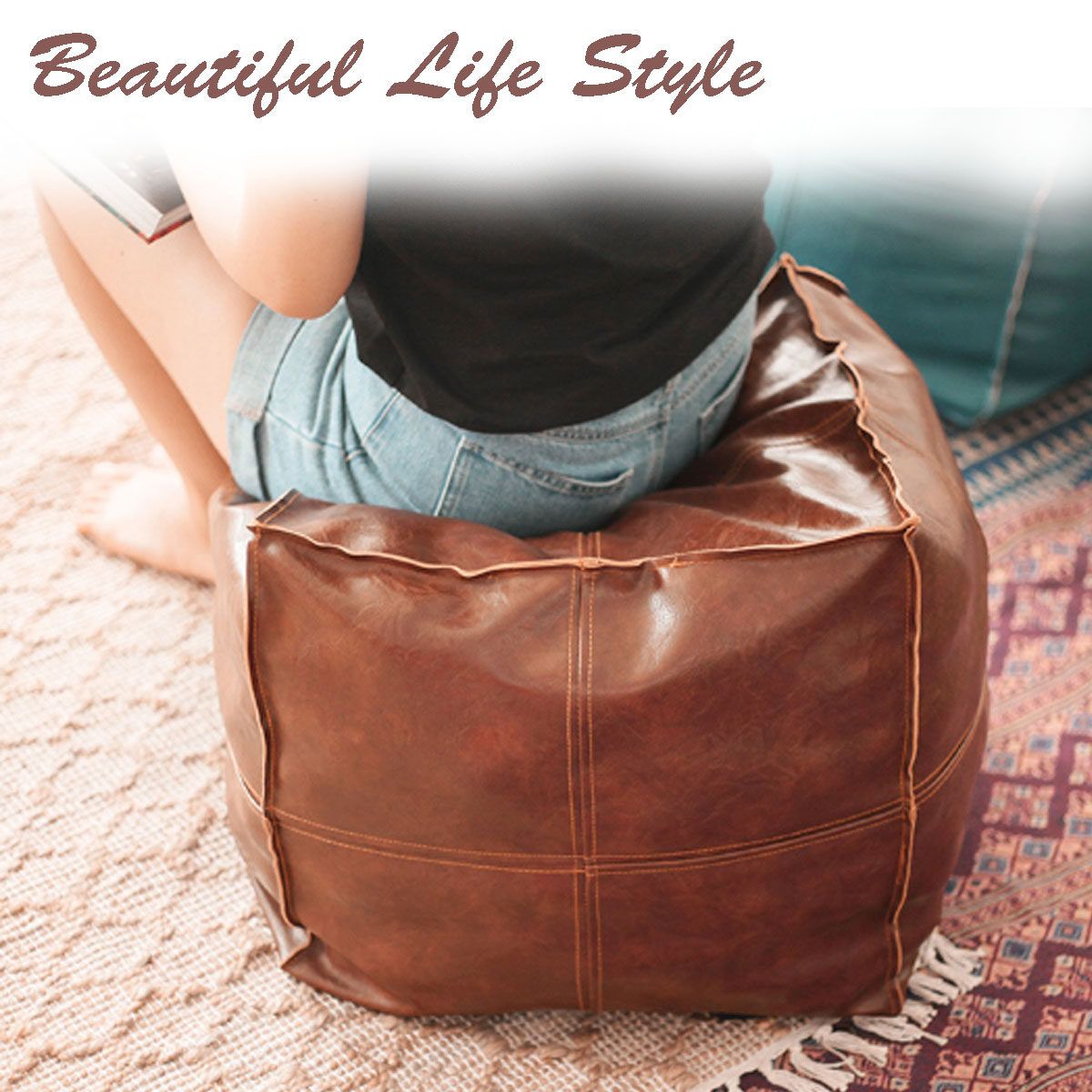 Unstuffed Moroccan Leather Ottoman Pouffe Pouf