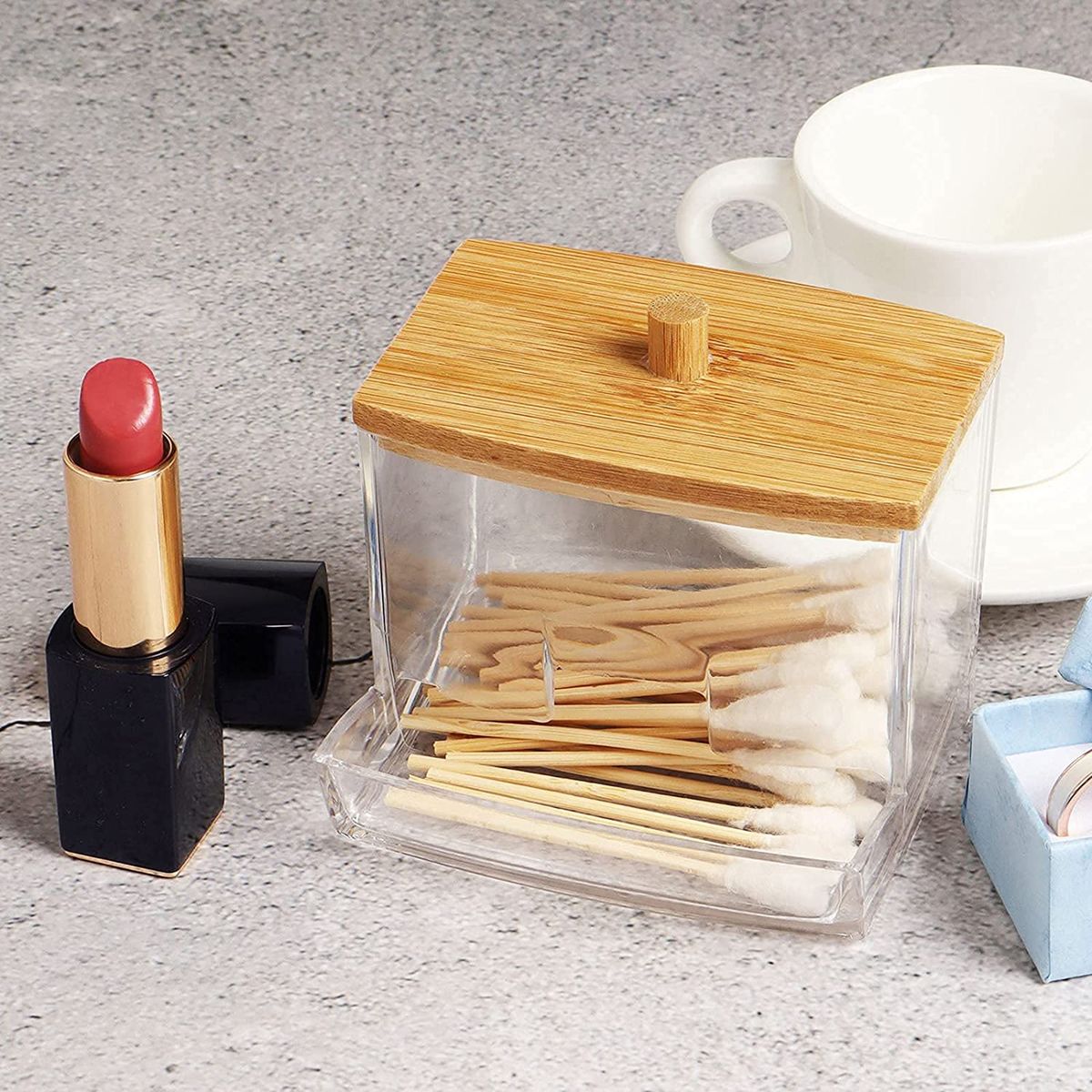 This is a box of clever design to put cotton swabs. You can take cotton swab from beside without need to raise the lip, safe and healthy. Transparent appearance is simple and nice, a great decoration for your room.
