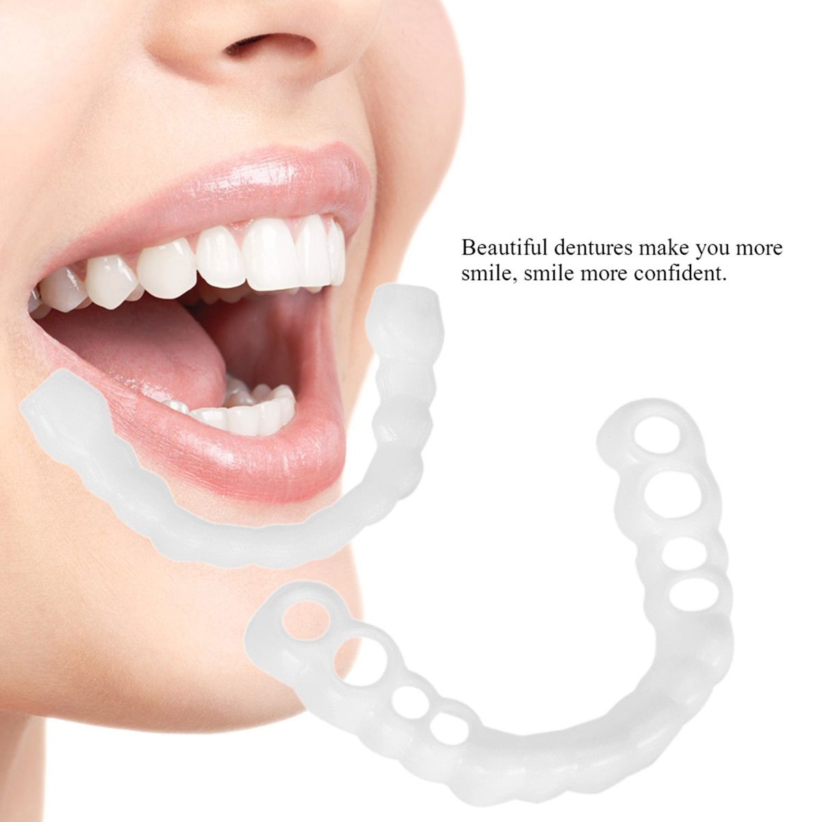 A special custom made mould works to disguise crooked, stained, missing and gapped teeth.