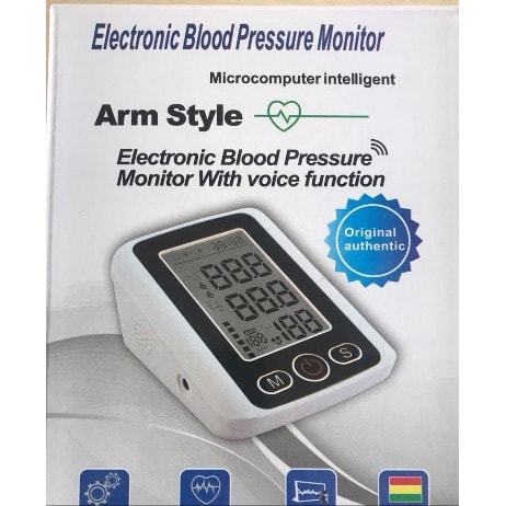 Electronic Blood Pressure Monitor with Voice Control Microcomputer Intelligent Upper Arm Digital Blood Pressure Monitor 1. Clinically Proven Accuracy 2. One Touch Operation 3. Large LCD Display 4. 2 x 99 Memories 5. User Guide 6. Pressure Rating Indicator 7. Voice Broadcast 8. Time & Date Display 9. BP & Pulse Measurement 10. Brand - New 11. Arm Style Blood Pressure Monitor