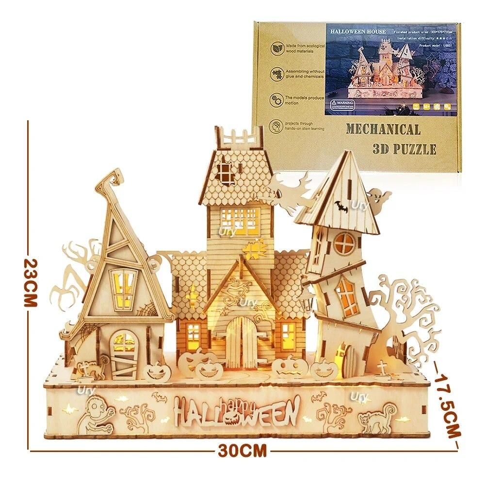 Buy URY New 3D Halloween Haunted House Wooden Puzzle Ghost Tree Light DIY Model Craft Kits Desk Decoration Toys Gift for Kids in Nigeria