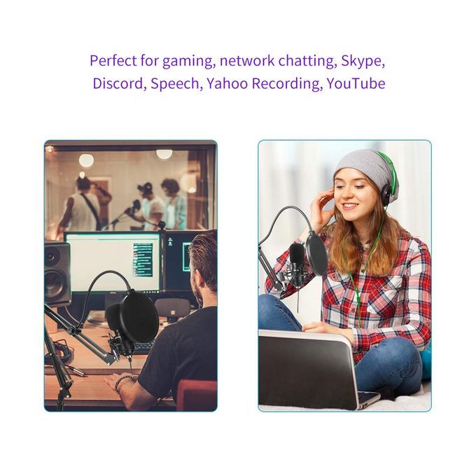 The condensing microphone is designed with a professional chipset to help USB microphones maintain a high resolution sampling rate, as high as 192KHz/24bit, which provides you with high-quality microphone with clear, smooth and flat sound response. The 16mm electroplated condenser can produce strong bass.