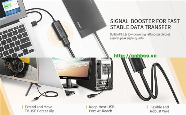 Ugreen 10318 USB 2.0 Type A Male to Type A Female Extension Cable provides standard high speed rate up to 480MB/s. Fully compatible with PC and Mac. Supports plug and play feature. Corrosion-resistant bare copper conductors. Foil and braid shielding provide maximum conductivity and minimize data loss. The connector 1 is USB 2.0 type A male and connector 2 is USB type A female.