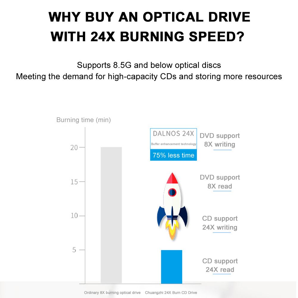 *1. Max 8x DVD Read Speed and Max 24x CD Read Speed provide high writing and reading speed.