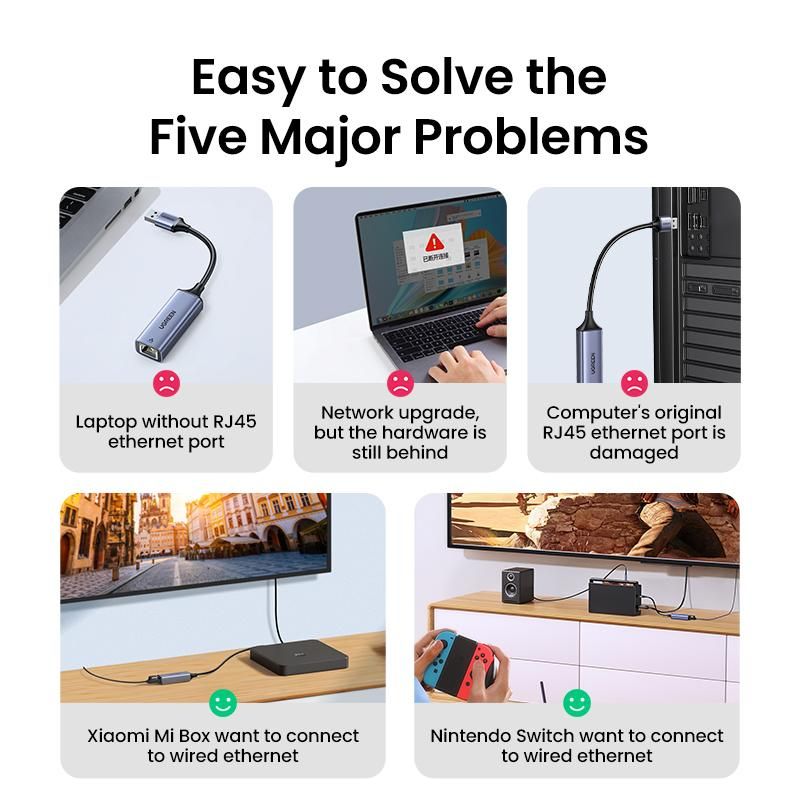 Compatible with Nintendo Switch: UGREEN USB A Ethernet Adapter is perfectly compatible with Nintendo Switch and Switch Oled. Just plug in and experience stable online gaming.