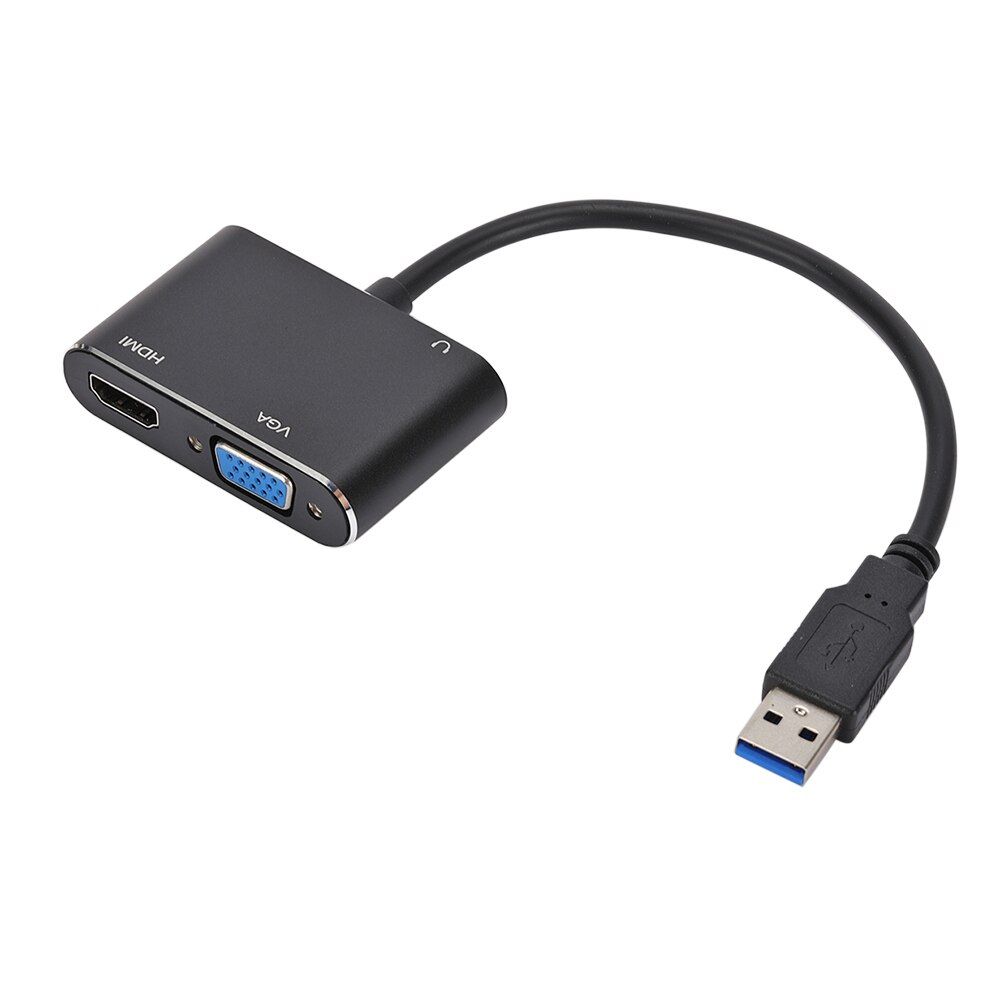 USB 3.0 to HDMI-Compatible +VGA driver-free Support USB2.0 and 3.0 output 1080P resolution (USB2.0 can also output 1080P) Support for xp, for win7, for win8, for win10, for mac os system Support audio and video synchronization, dual screen (copy mode/extended mode) Function: Directly transfer the USB of the notebook/computer host to the HDMI-Compatible interface or VGA interface monitor (projection/TV) and other devices for display. Input interface: USB3.0 Output interface: VGA HDMI-Compatible 3.5 audio interface Product size: 18*6.5*1.5cm