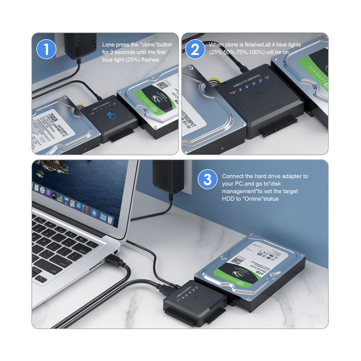 3 It is allowed to operate three HDDs at the same time The data transmission rate is up to 5 Gbps and it is backward compatible with USB 2011 Includes 12V 2A power cable for providing stable power supply