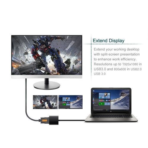 Sync image with two displays to gives you a convenient visual enjoyment. With this USB VGA Adapter, you can conveniently share and enjoy videos or slideshows on the big and high definition screen.