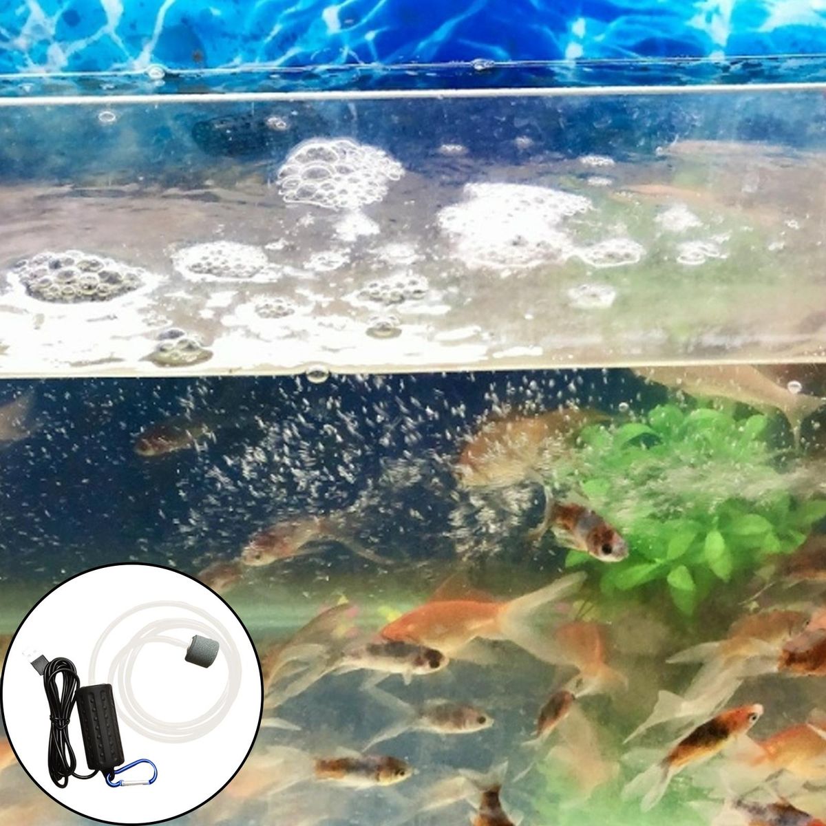 This fish tank USB air pump is small, light weight and can be carried with you, compatible with power banks, mobile phone chargers.