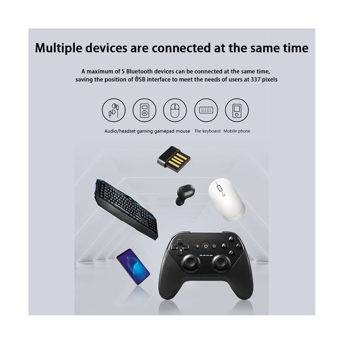 Support up to 5 bluetooth devices to connect at the same time, saving the location of the USB interface to meet various needs of users.