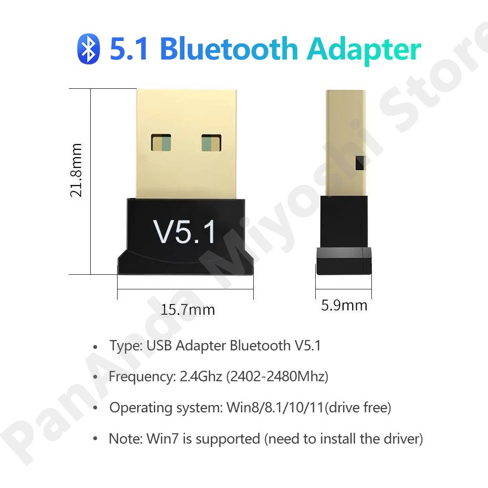 USB Bluetooth BT 5.1 Dongle Adapter Receiver Win8/8.1/10/11 Driver-Free Support Multiple Devices Simultaneous Connection