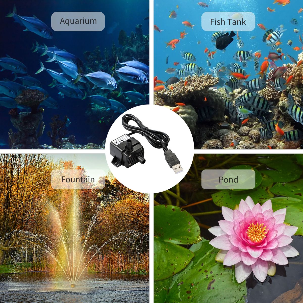 where reliable water conveyance, circulation, or flow is required. A fountain pump with a USB interface can plug to almost everything with a USB interface(such as , Laptop, USB socket, etc).