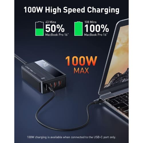 Buy USB-C Charger Block With Led Display - 4-Port USB-C & USB-A - 100W Pd Fast Charger in Nigeria