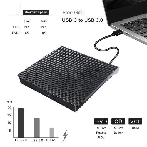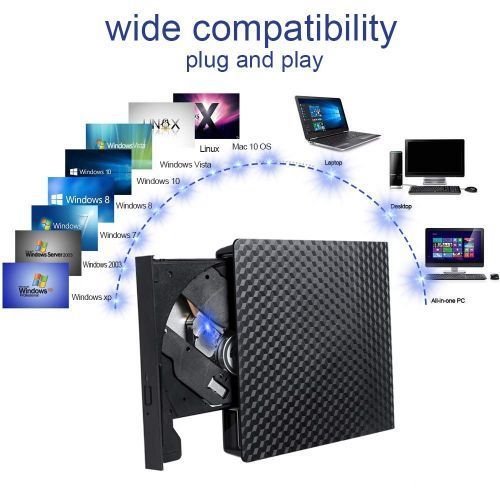 【Optical Drive】External cd drive works with Windows 10/7/8/Mac OSX/XP/Vista,all Version MAC OS.Specially designed to compatible with Apple/Mac/MacBood Pro/Air/Samsung/ASUS/Dell/Sony/Acer and other Ultrabook, Netbook or Laptop/PC without internal drive But with USB C or USB 3.0 interfaces.