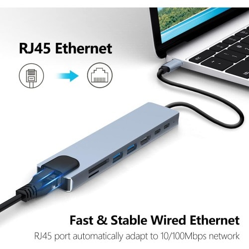 Buy Usb C Hub - 8 In 1 Multifunction Adapter - Uds - 4k Hdmi - Hdtv - Sd/tf Card - Rj45 - Usb C in Nigeria