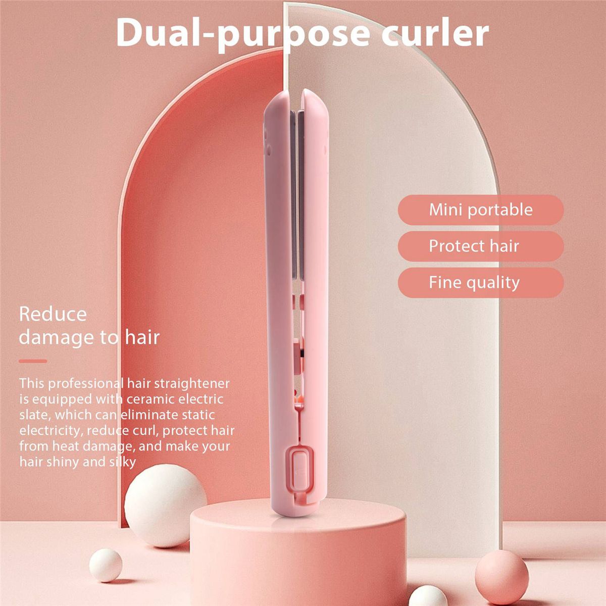 Detailed Information About The Product:Reduce damage to hair: This professional hair straightener is equipped with ceramic tourmaline plates, which can eliminate static electricity, reduce frizz, protect hair from heat damage, and make your hair shiny and silky.