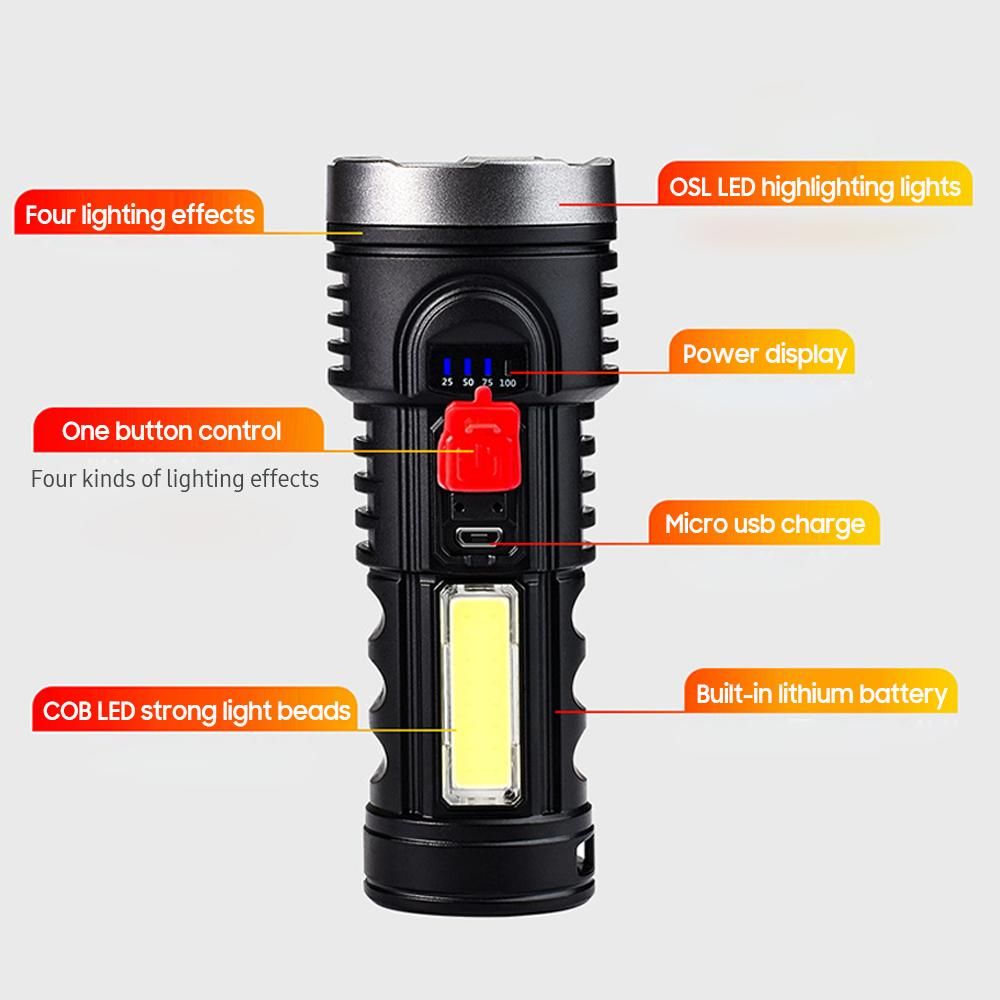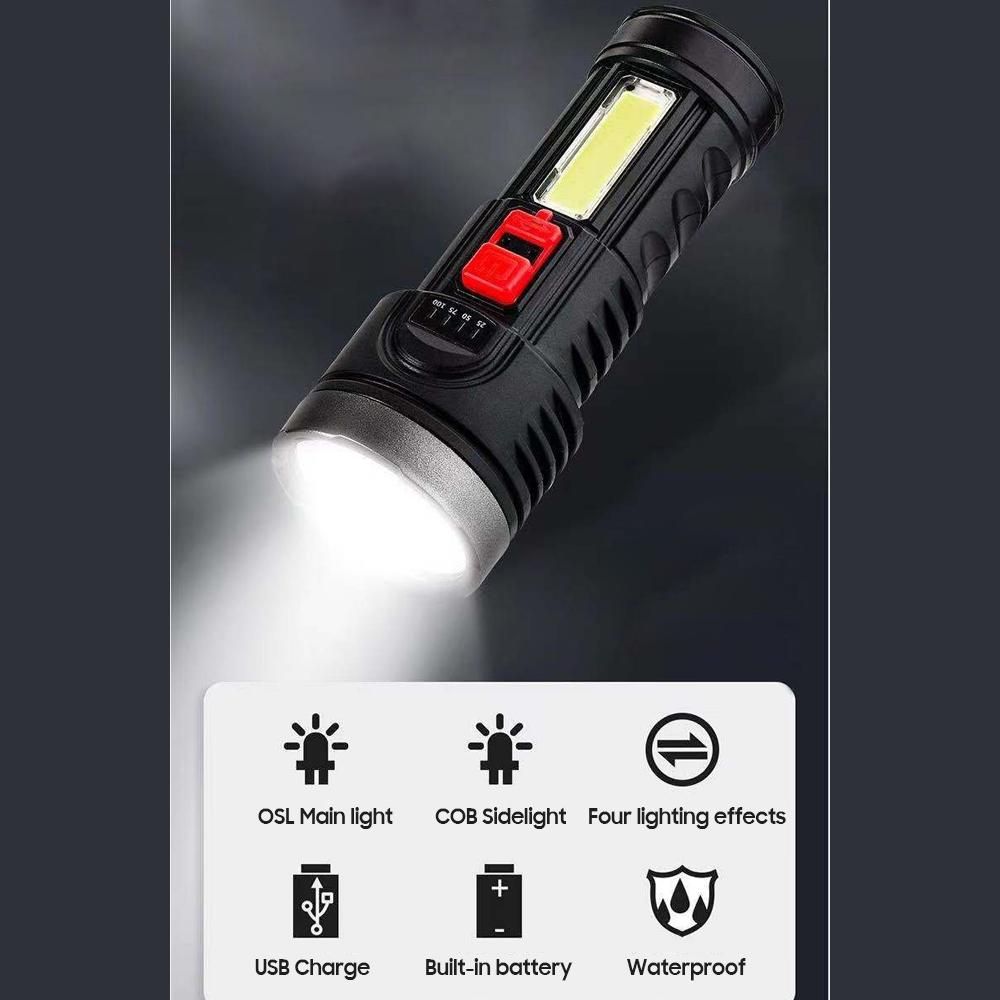 Buy USB Charge Flashlight Portable Super Bright Outdoor LED COB High Quality Flashlight with Four Lighting Modes SOS Flash Waterproof Built-in Lithium Battery for Camping Hiking Emergency in Nigeria