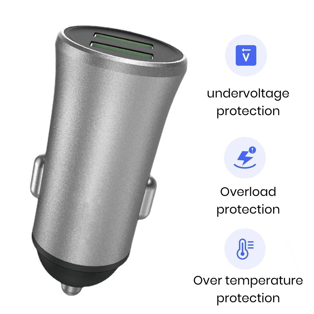 Our usb car charger is crafted from high-quality metal material, ensuring safe charging without overheating. it comes with under-voltage protection, overload protection, and over-temperature protection, providing multiple layers of safety for worry-free charging. say goodbye to slow charging and unreliable chargers.